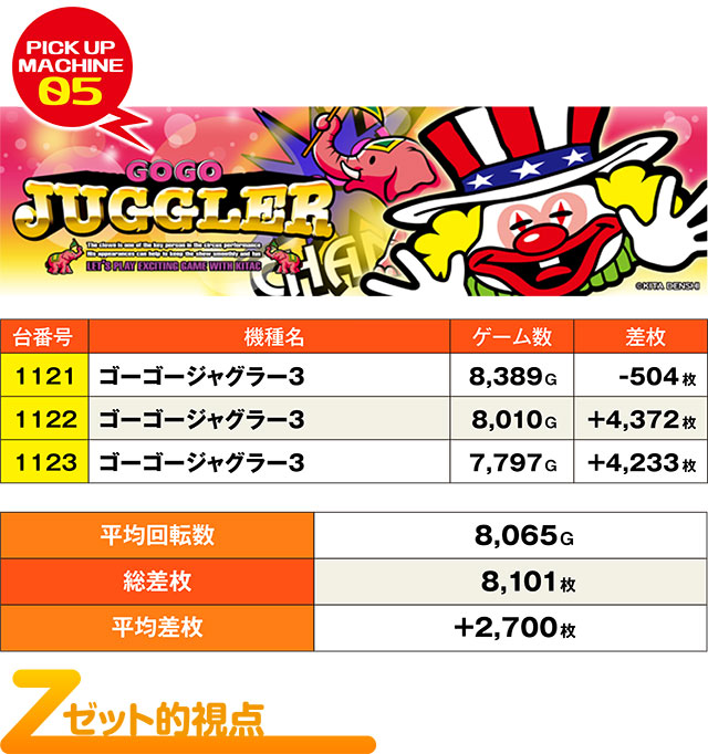 1109番台がめざましい活躍を見せ、3,000枚を突破することに成功!さらに1107番台と1108番台もプラスとくれば、これはもう優秀台の3台並び!