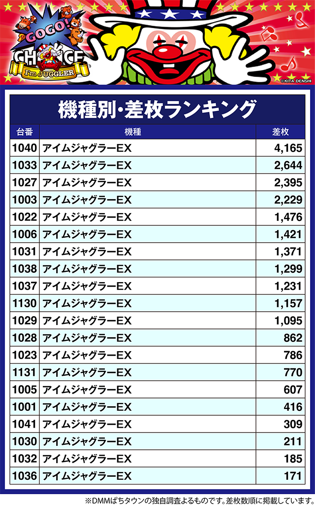 「ミスタージャグラー」の1134番台もプラスとなった。