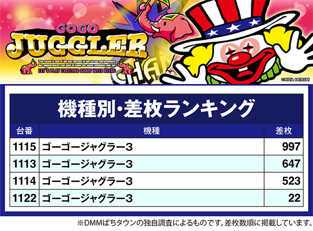 また、「ジャグラーガールズSS」でも1045番台が結果を残した。