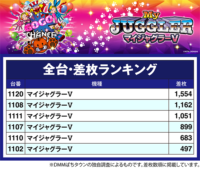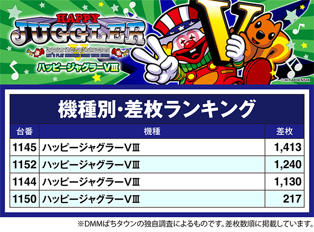 4台がプラスとなった「ハッピージャグラーVⅢ」では、3台が1,100ptを上回った。
