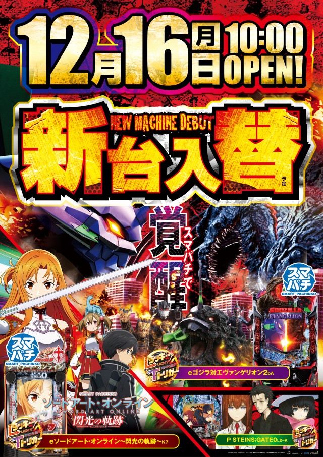 本日新台入替(予定)!最新台をお楽しみ下さい!