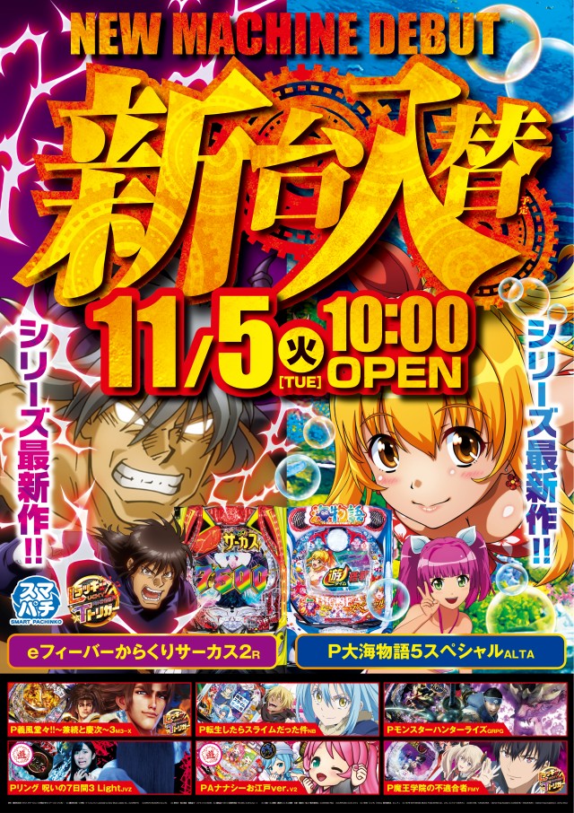 11/5(月)最新台多数導入済!からくりサーカスや大海5SP