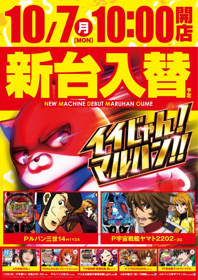イイじゃんマルハン!イイじゃん青梅!本日大型新台入替(予定)