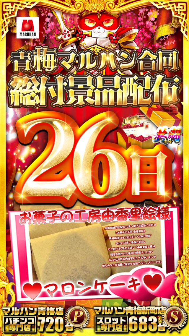 青梅共闘!本日15時頃より合同総付配布!マロンケーキ♪
