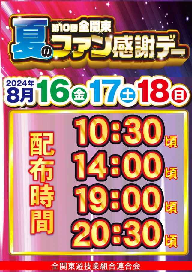 8月13日(火)新台入替(予定)入場抽選は【9:45】より!