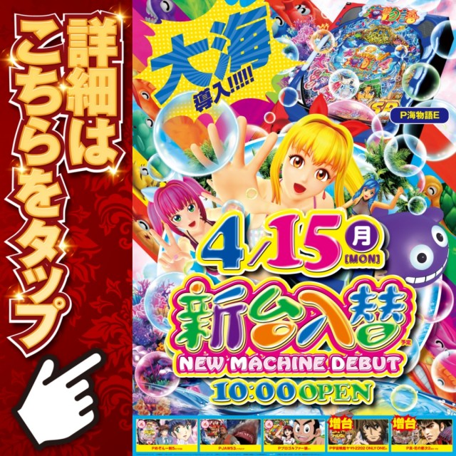 4月23日(火)10時オープン!!大型新台入替済み♪