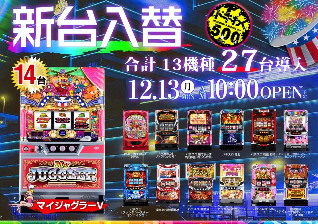 マイジャグⅤを含む13機種27台導入!!