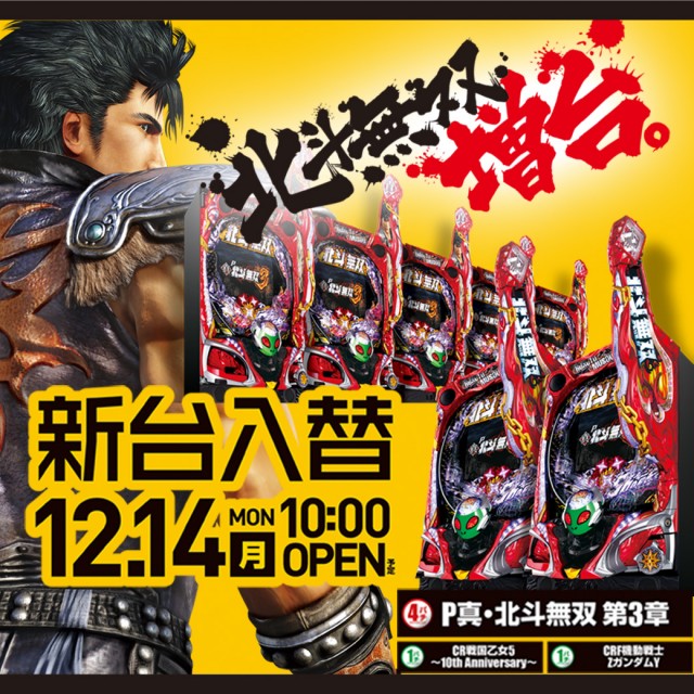 本日10時開店!北斗無双3増台!ご来店お待ちしております!