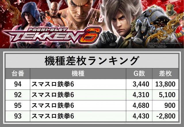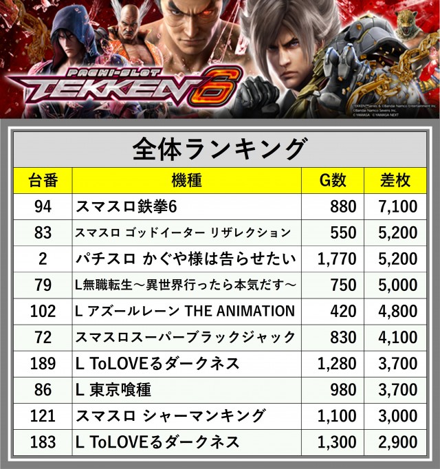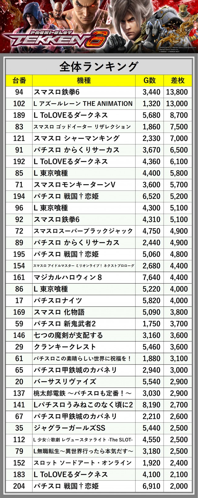 ※差枚数順に掲載しています