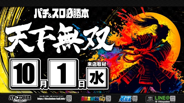10月1日(水)賞品入荷!天下無双来店取材(予定)