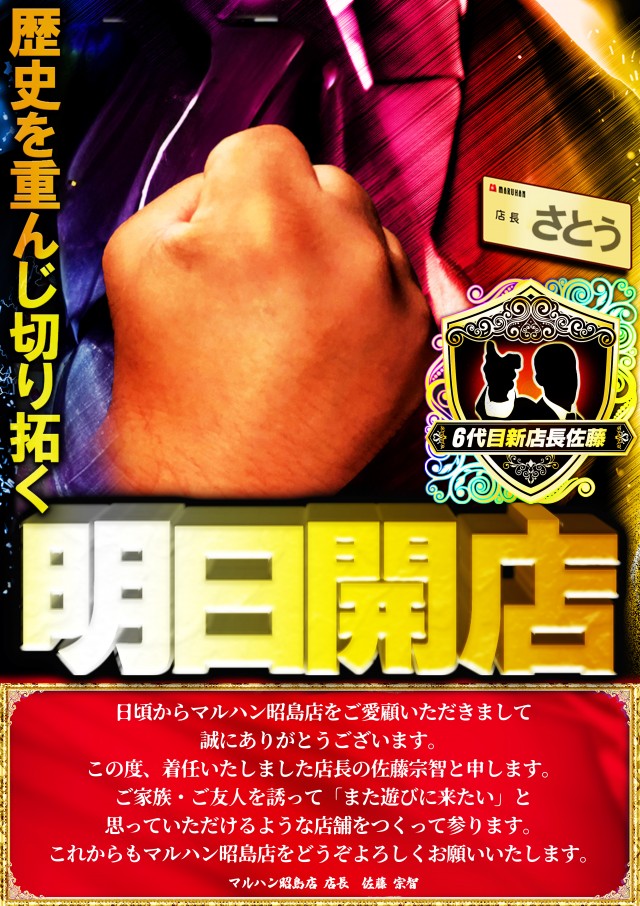 昭島店新店長の佐藤です。明日10時開店!!