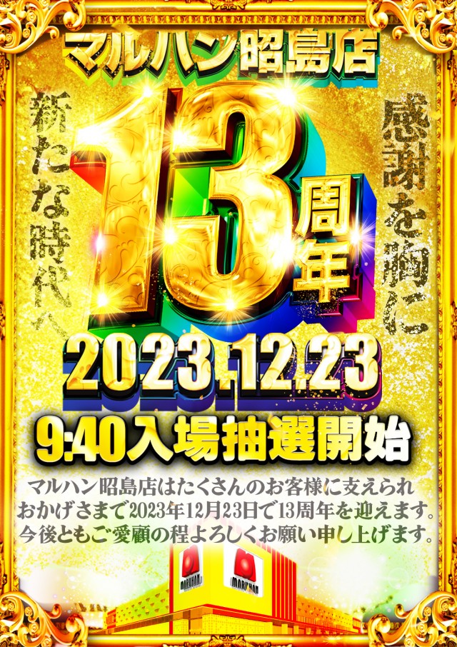 ☆☆マルハン昭島☆☆ 13周年!!13周年!!13周年!!