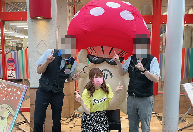 親しみやすい雰囲気のスタッフさんと一緒に記念写真を撮っていた美穂ちゃん。