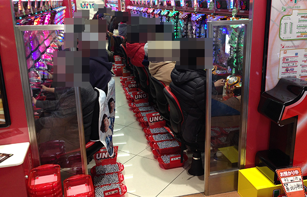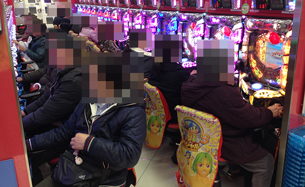 午後のパチンコでは、新台の「ぱちんこCR真・北斗無双」や「パチンコCR美男ですね」がほぼ満席とひときわ活気づいていた。