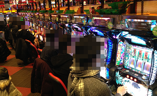 パチスロの「ミリオンゴッド-神々の凱旋-」では、遊技中のプレイヤーのほとんどが笑顔になっており、満足度も高そうだ。