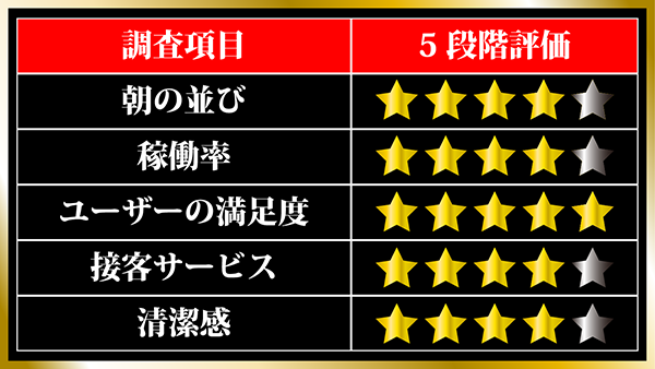 忙しいなかでもつねにプレイヤーたちに気を配っているスタッフや清潔感のある店内など、遊技に集中できる環境もしっかりと整っていた。