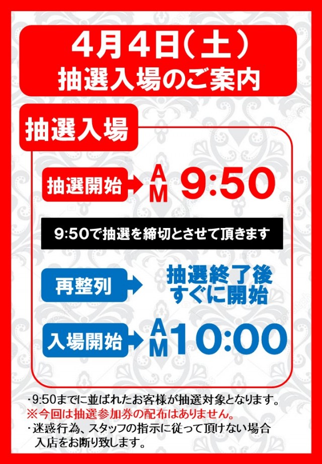 本日4月7日(火)【新台入替】2日目の御案内です。