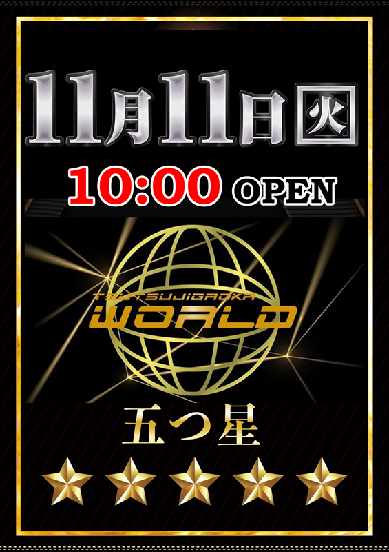 本日11月11日(火)【ゾロ目の日】のご案内です。