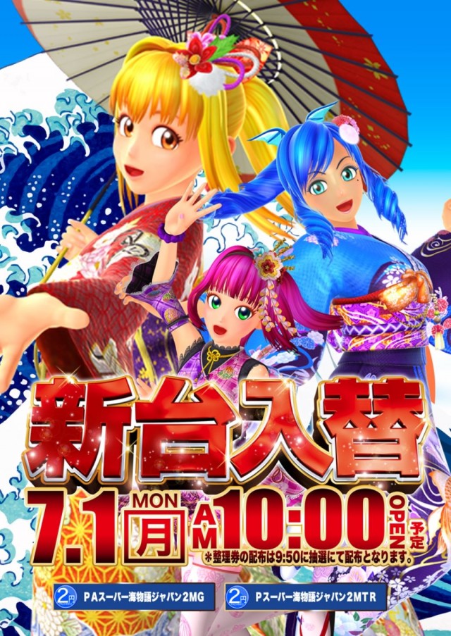 オゼック 久米川店です。明日7月1日(月)新台入替予定です!