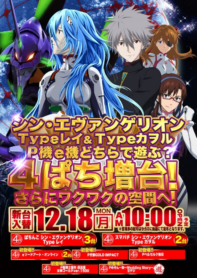 4円増台!12/18新台入替 Pシンエヴァ&eシンエヴァ!