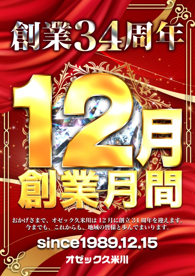 オゼック久米川12/15創業日 ご愛顧ありがとうございます!