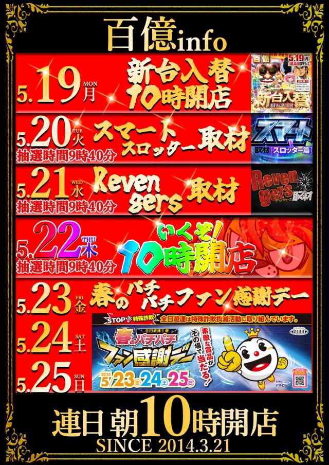 明日スマスロ取材開催【百億】抽選時間9時40分!!10時開店