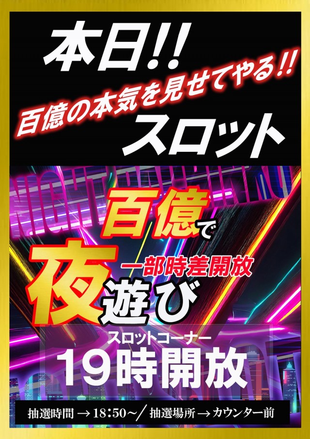 本日!!新台入替の夜からも【百億】🤡🐯🐄🐘🐿️