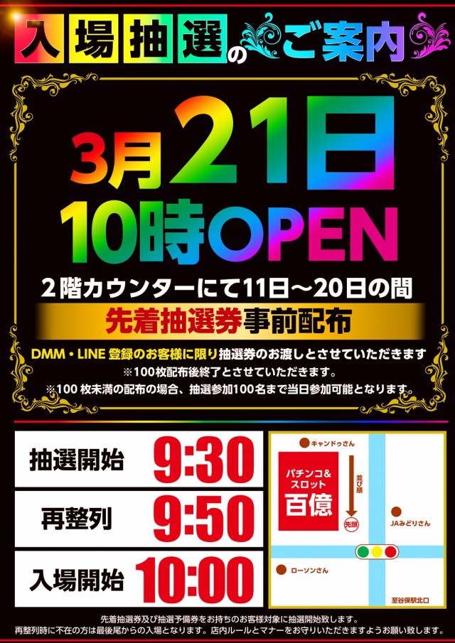明日も朝から【百億】で!!10時開店!!抽選開始9時50分