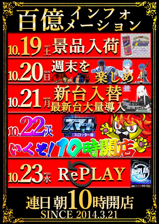 明日は新台入替10時開店!!抽選開始9時50分!!