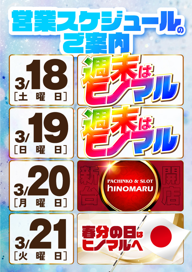 🌈週末はヒノマル🌈地域最大のスマスロ28台&ジャグラー41台