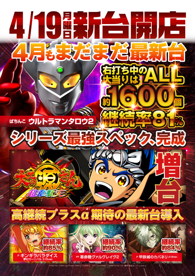 本日4月26日新台開店 ファンキージャグラー さらに導入!
