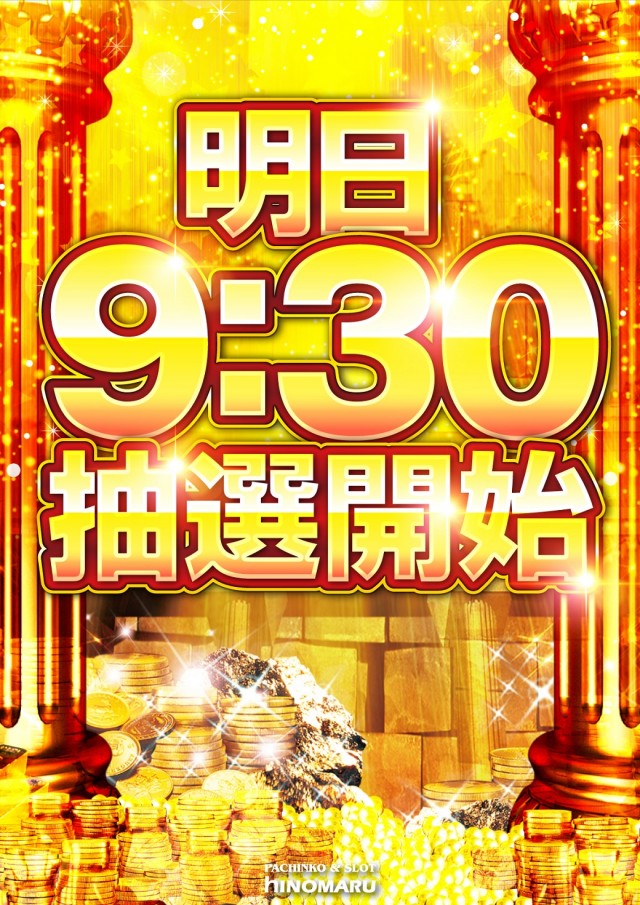 明日1月6日(水)は今年初の新台入替!抽選は9:30より♪