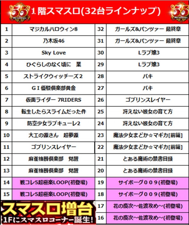 🐼1階スマスロ32台に注目🐼バラエティ機種にもサプライズが🐼