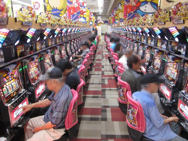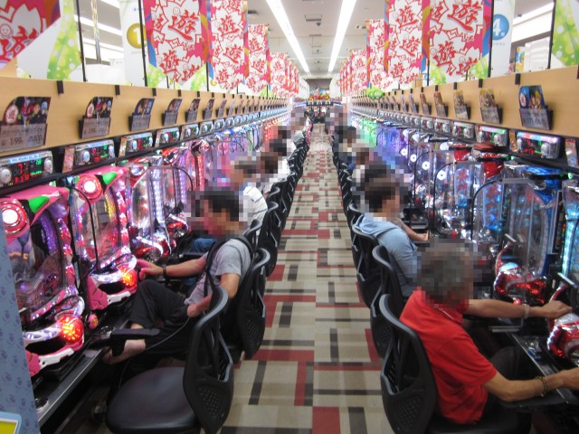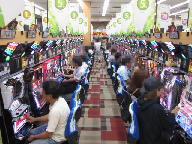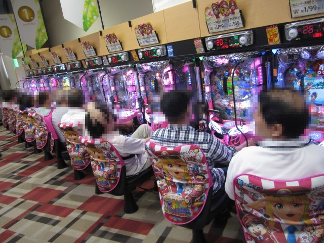 4円パチンコのコーナーには「スーパー海物語 IN JAPAN」を筆頭に「海物語シリーズ」は多くのプレイヤーで席を埋めていた。