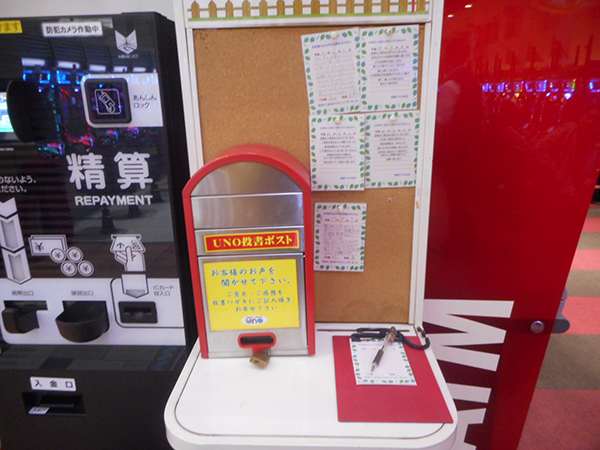 ホール内には、投書ポストが設置されていたことも印象に残っている。プレイヤーの要望なども掲示されており、ユーザーの意見を反映したホール作りをしようという思いも伝わってきた。