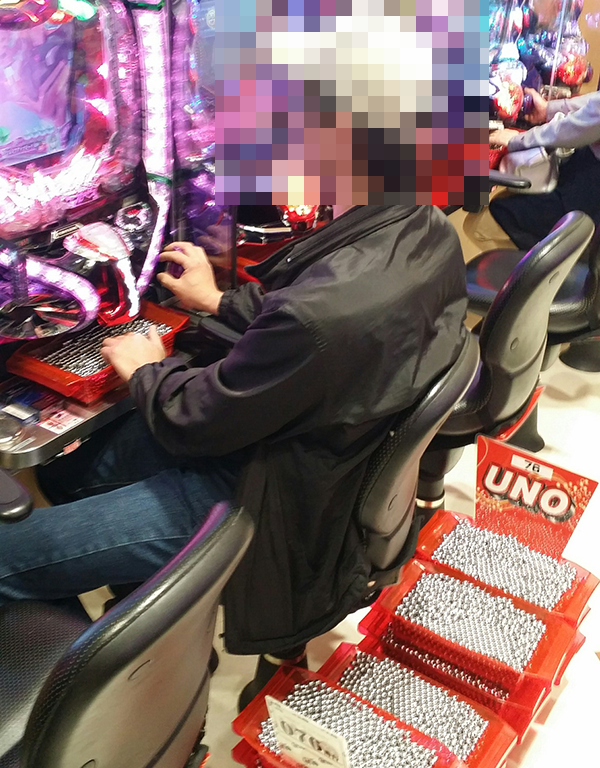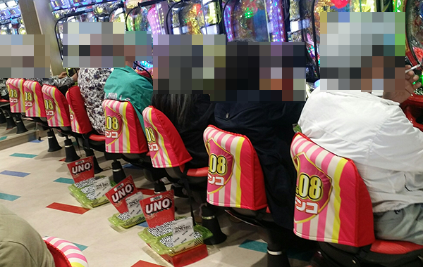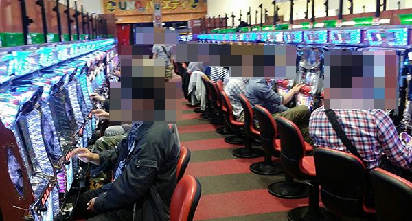 15時頃の1000円/240玉パチンコでは、とくに海物語シリーズの稼働率が高い。シニア層の姿も多く、明るい表情で遊技を続けるプレイヤーも多かった。