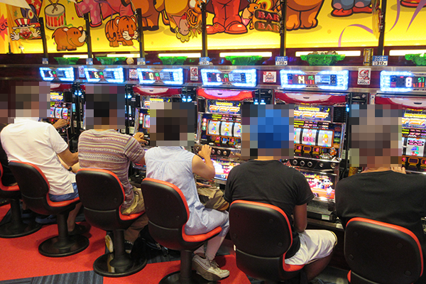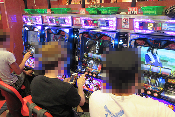 1000円/48枚パチスロのなかで、注目を集めていたのはジャグラーシリーズ。遊技を楽しむプレイヤーの姿からは、満足感を得られていることがうかがえた。