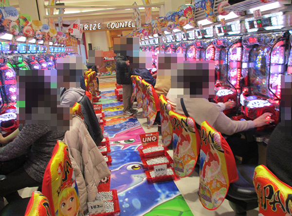 海物語シリーズや「CRフィーバークィーン」など、さまざまな機種がにぎわっていた。
