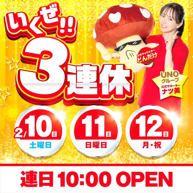 2月10日~13日 3連休!ライオン連日10時オープン!!