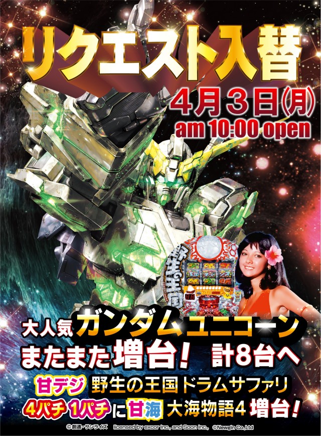 本日4月7日(金)10時開店!新台多数導入済み!!
