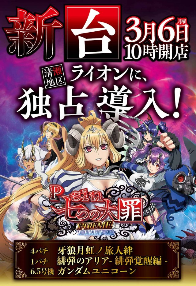 新台「七つの大罪・ガンダムユニコーン」等導入!10時開店!!