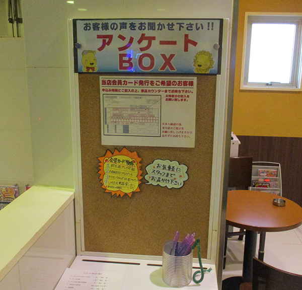 アンケートBOXを設置し、プレイヤーの声を取り入れたホールづくりをおこなっていることにも好感を覚えた。