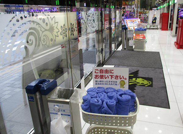 また、この日は悪天候であったため、入り口付近にタオルが設置されていた。細やかな配慮も、プレイヤーから支持されている理由のひとつであるように思う。