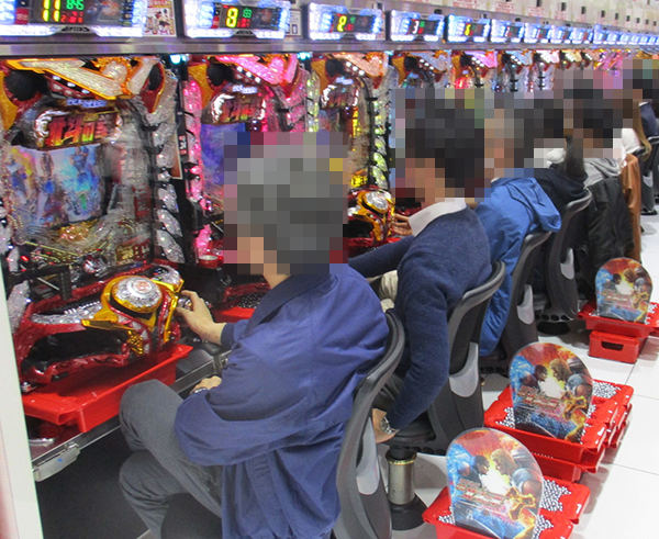 夕方の500円/120玉パチンコでは、新台の「ぱちんこCR北斗の拳7 転生」が盛況。