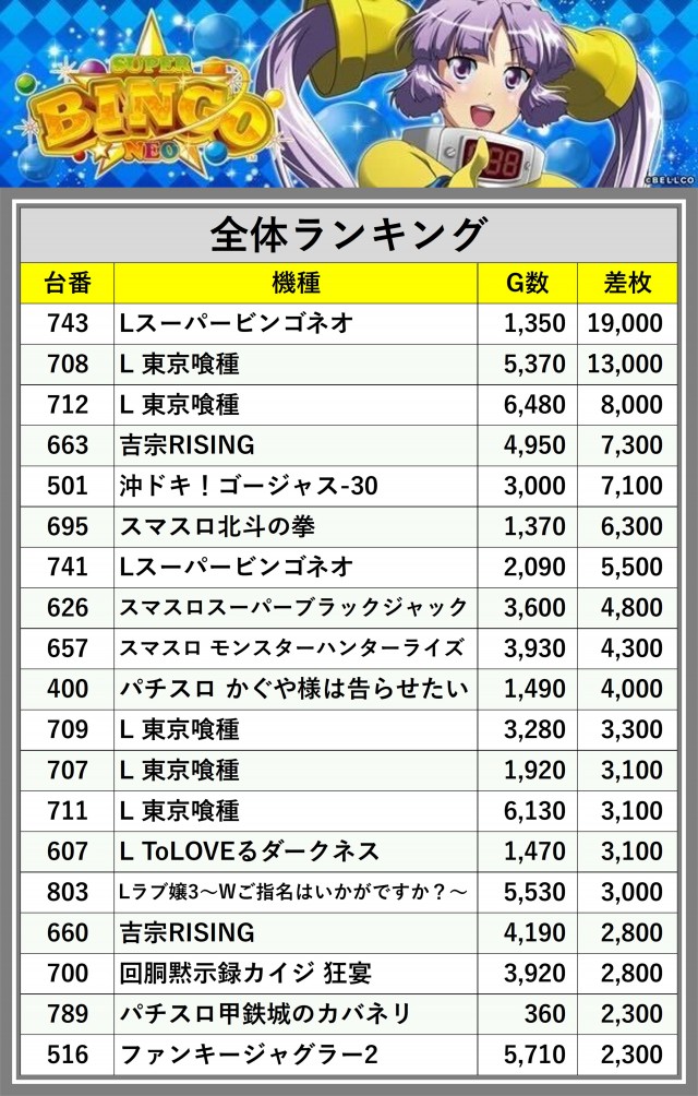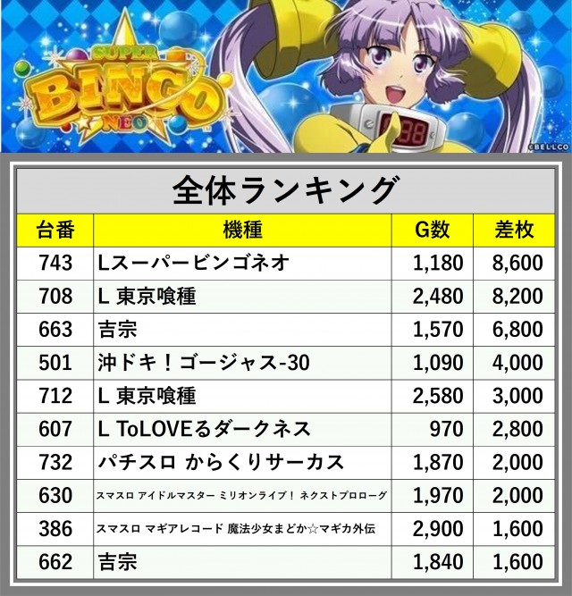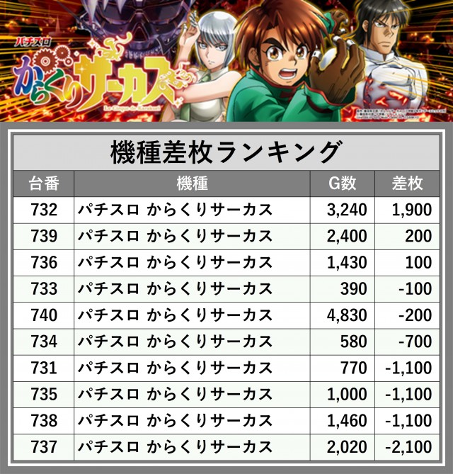 ※差枚数順に掲載しています