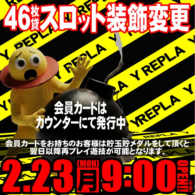 2月23日[月] 再プレイのご案内!46S装飾変更もあります