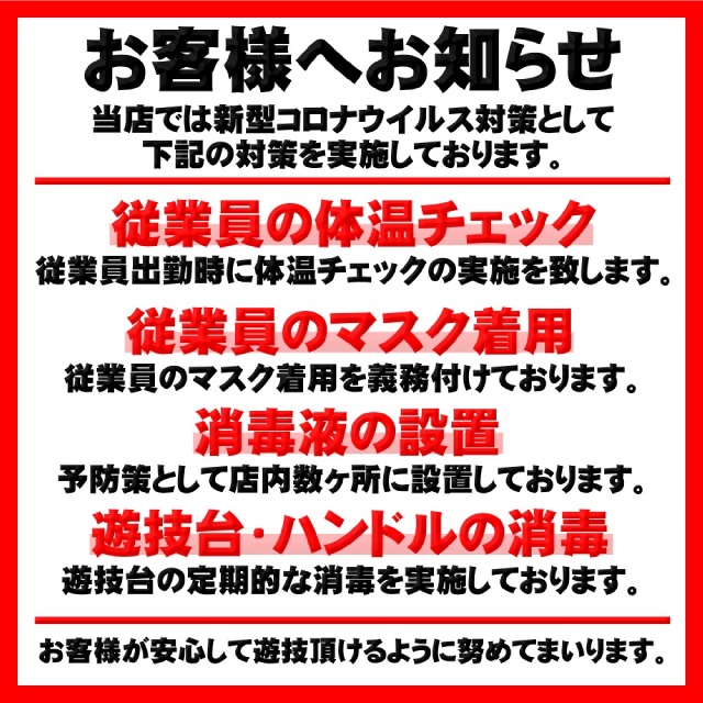 当店は入場順番抽選方式です。抽選開始8:50 再整列は抽選後即行います。 ※不定期で抽選時間が変更になる事もございます。 その際は最新情報にてご案内致します。 |