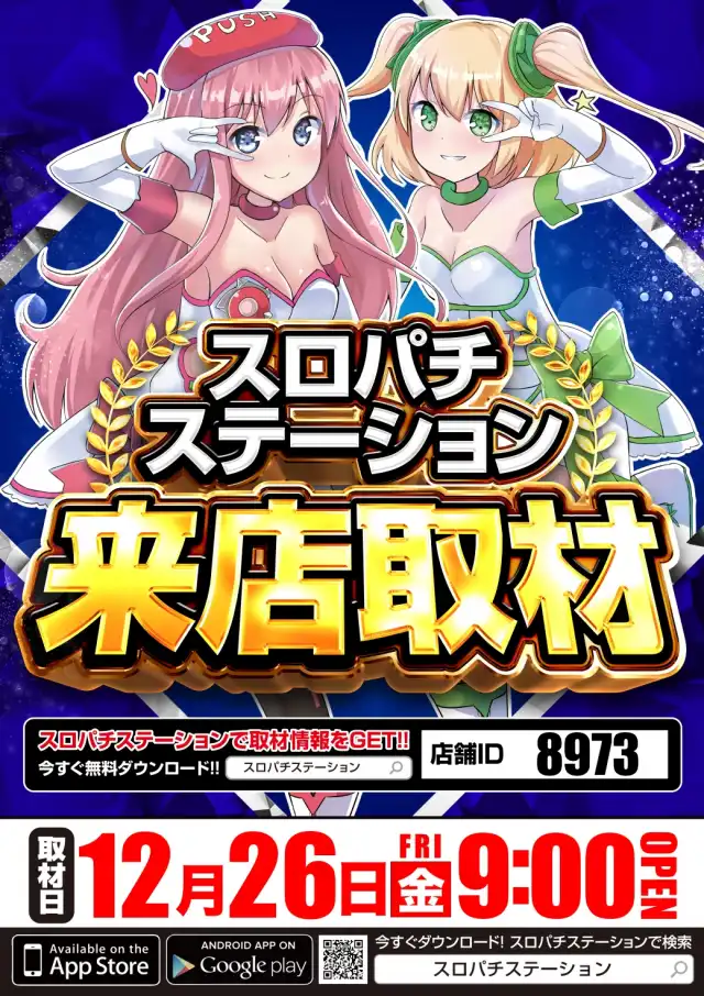 12月26日【金】スロパチステーション来店取材!8:50から抽選開始!10周年を迎え、店舗は正に活況!ご来店お待ちしております。