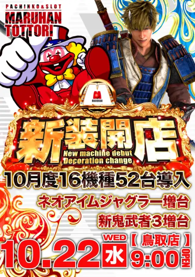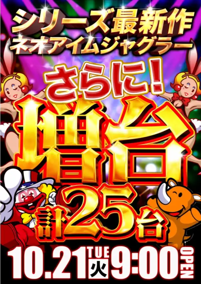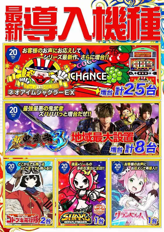 10月21日【火】新台入替予定!鬼武者増台!ネオアイム増台!