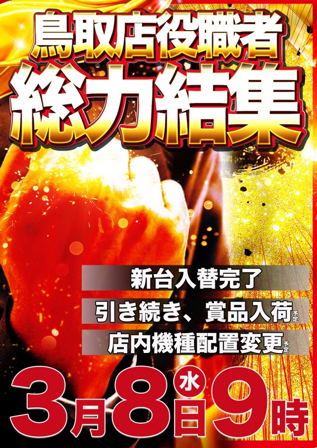 3月8日★新台入替完了★役職者総力結集【餃子入荷】